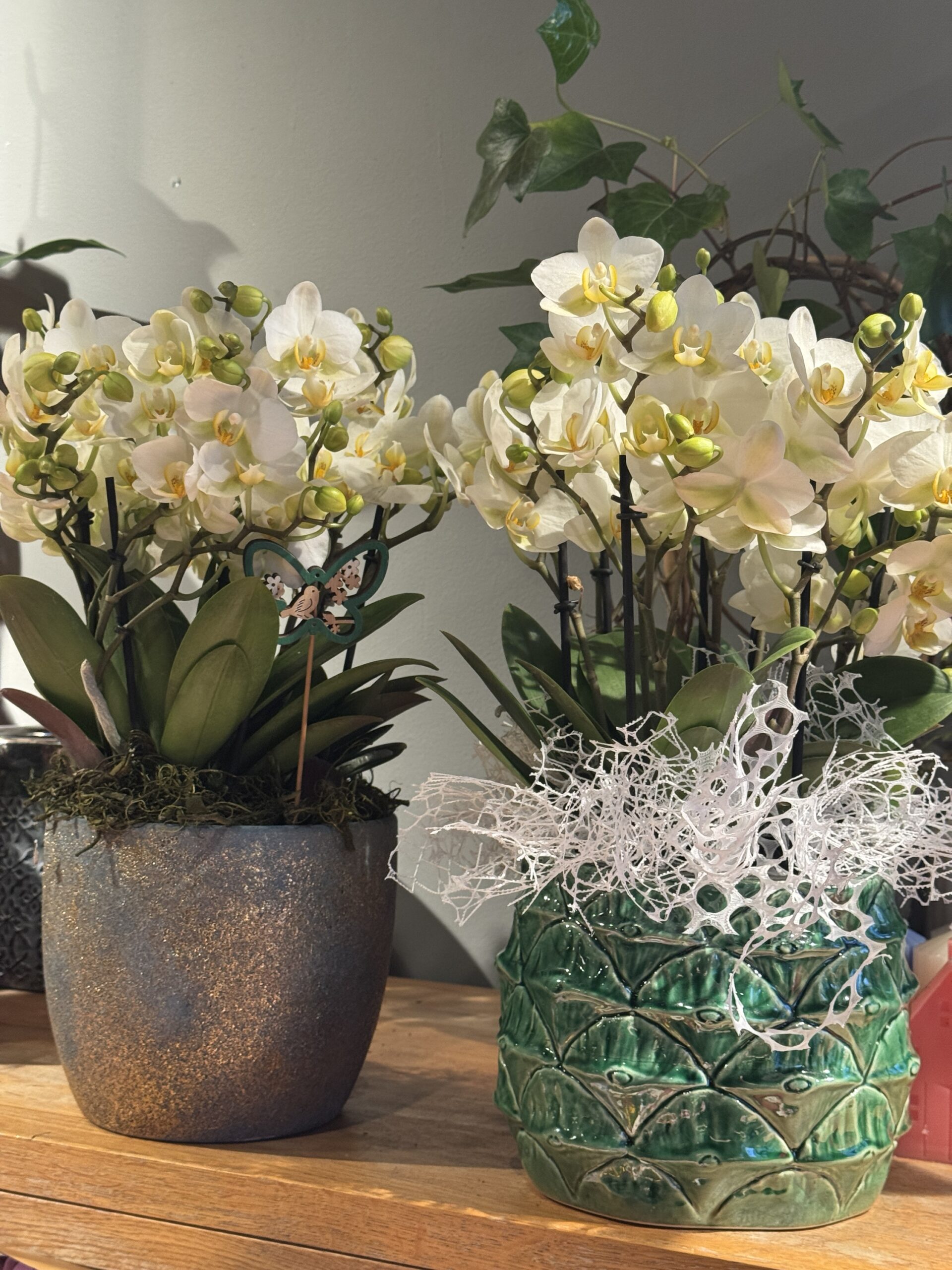 Phalaenopsis multi-tija, accesorii decorative, ghiveci ceramica